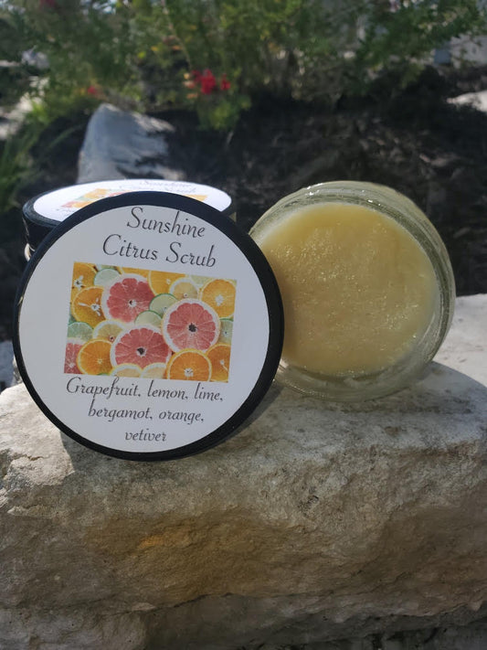 Sunshine- Citrus scent is what this is all about. This blend helps fight cellulite, brightens the skin, helps ease pain and is energizing. Essential oils used: grapefruit, *lemon, lime, *bergamot, *sweet orange, *vetiver (new blend will include Neroli and not include vetiver)
